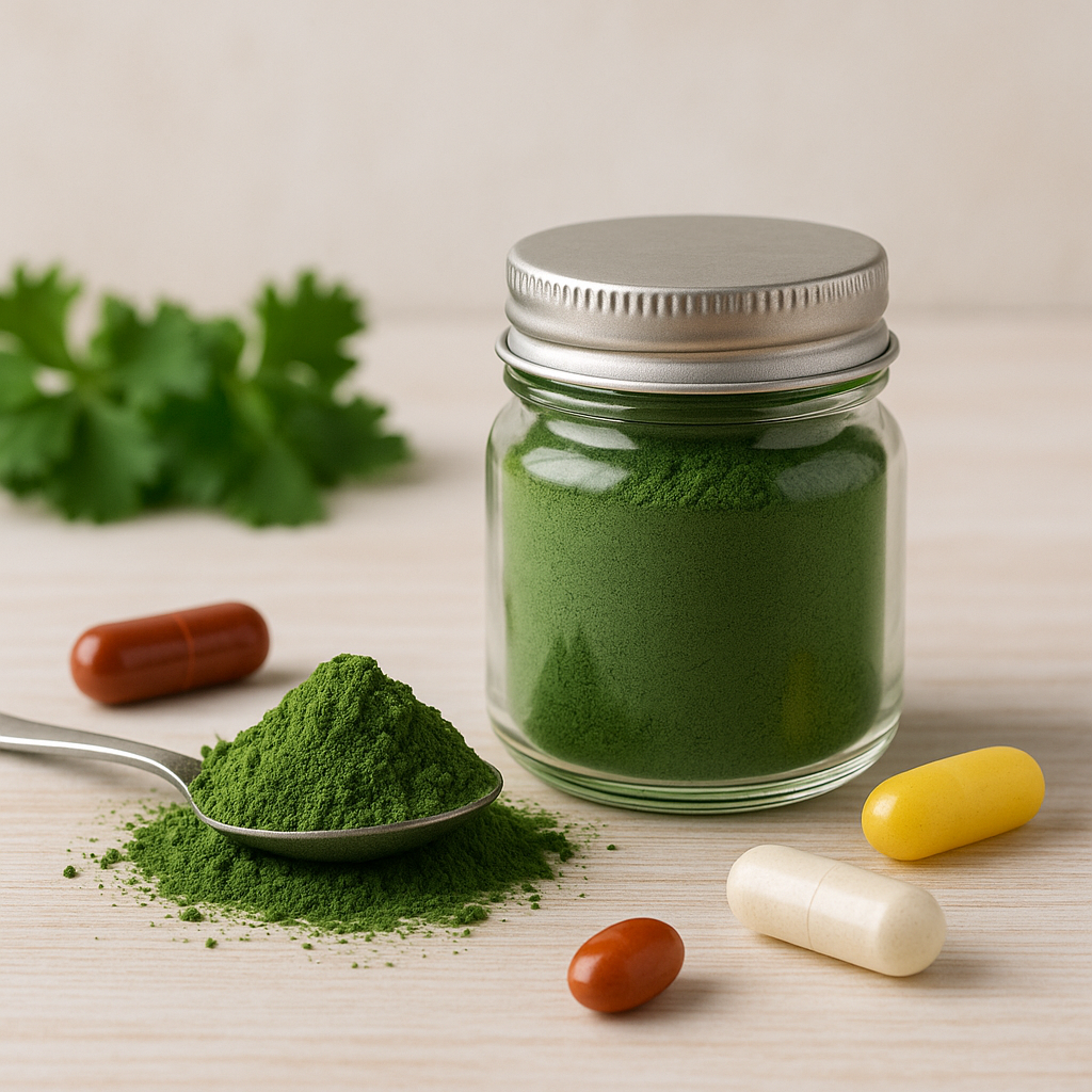 Spirulina ist eine mikrofeine Biomasse, die sich durch ihre charakteristische Farbe und ihren typischen Geruch auszeichnet. In dieser Formulierung dient sie in erster Linie als Trägerstoff für die B-Vitamine und sorgt für eine gute Verteilbarkeit des Pulvers. Die Verwendung von Spirulina macht zusätzliche synthetische Trägerstoffe überflüssig und unterstreicht den naturnahen Ansatz des Produkts.