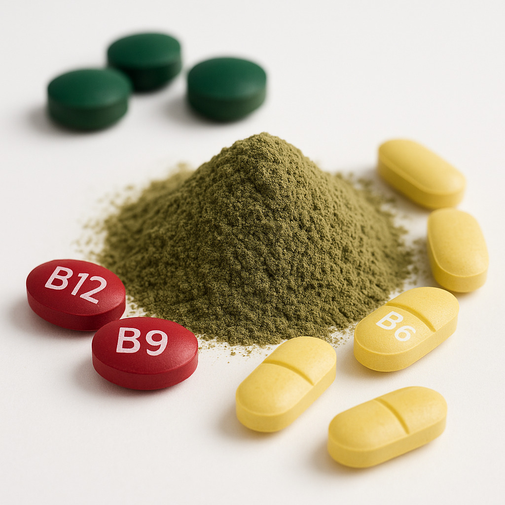 Im Zusammenhang mit dem Homocystein-Stoffwechsel werden neben B6, B12 und Folsäure auch Mikronährstoffe wie Betain, Cholin und Folat diskutiert. Diese dienen als Methylgruppendonoren bei bestimmten Stoffwechselvarianten. Das hier beschriebene Produkt konzentriert sich auf die drei zentralen Vitamine in Kombination mit natürlichem Spirulinapulver – ganz ohne synthetische Hilfsstoffe.