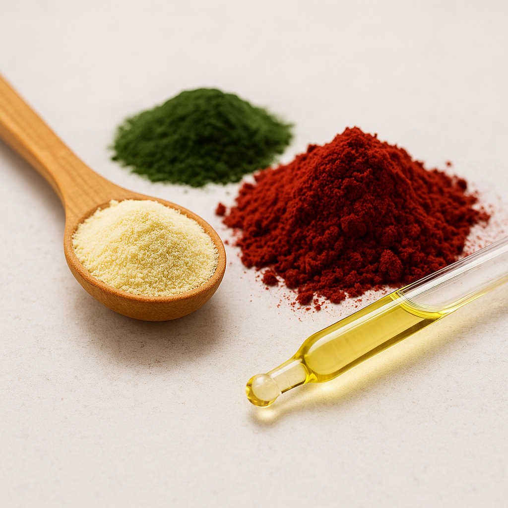 Astaxanthin ist ein natürlich vorkommendes Carotinoid mit charakteristischer rötlicher Farbe, das in bestimmten Mikroalgen, darunter Haematococcus pluvialis, gebildet wird. Das in Herbarium Q10 Kraftquelle verwendete astaxanthinreiche Oleoresin stammt aus dieser Alge und trägt zur Farbgebung und zum Profil der Rezeptur bei. Die Einbindung in MCT-Öl schafft eine homogene Verteilung und ein ruhiges, ölbasiertes Erscheinungsbild.