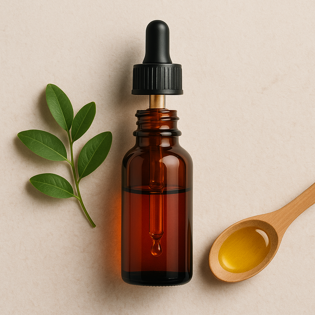 Als Träger dient MCT-Öl aus Kokos, das sich durch eine neutrale sensorische Anmutung und eine leichte, flüssige Konsistenz auszeichnet. Es verbindet die fettlöslichen Bestandteile zu einer gleichmäßigen Mischung und sorgt für ein angenehmes Mundgefühl. Die Ölform eignet sich für Anwenderinnen und Anwender, die eine Alternative zu Kapseln bevorzugen und Wert auf eine flexible, tropfenweise Dosierung legen.