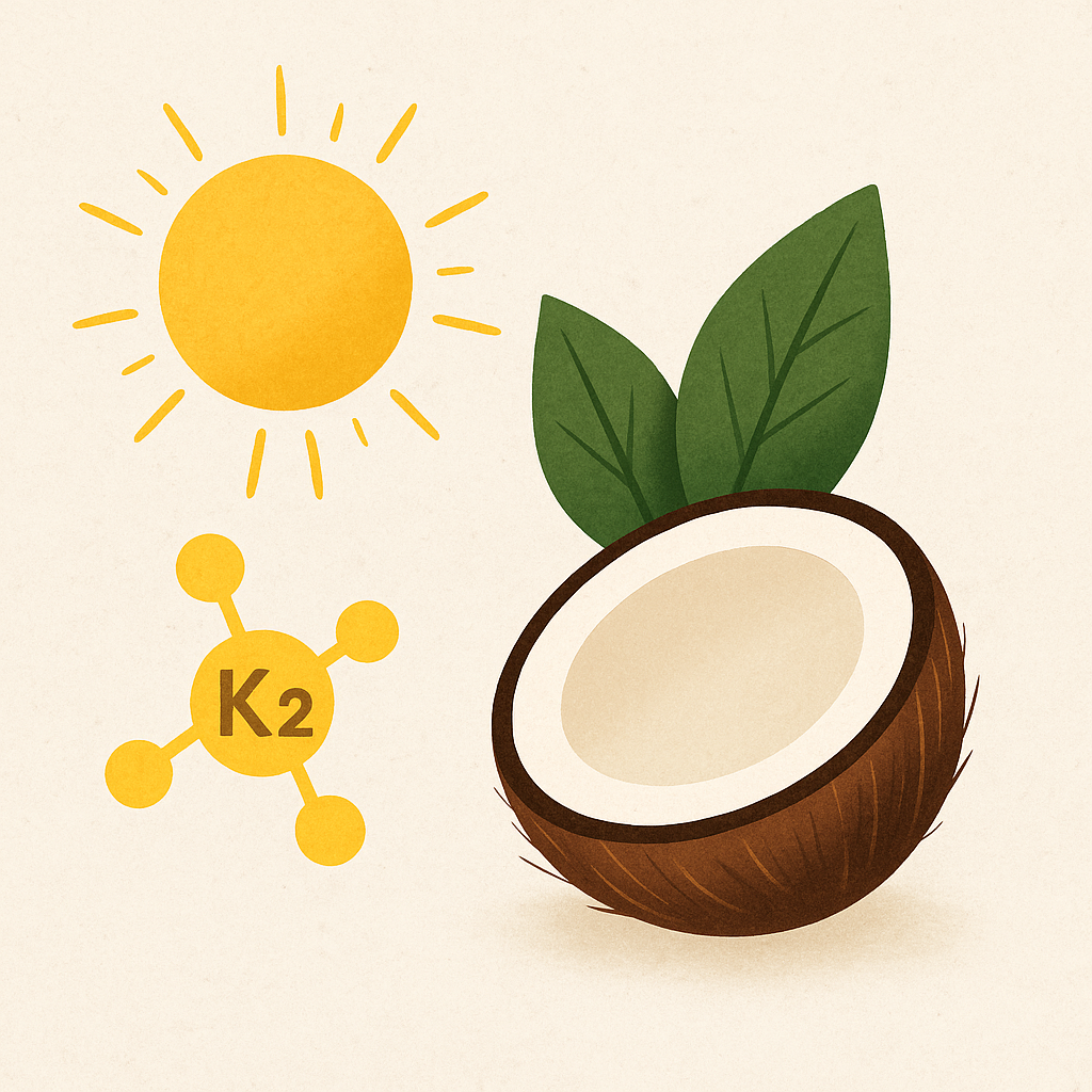 Pflanzliches Öl aus Kokos, Menachinon, Cholecalciferol.